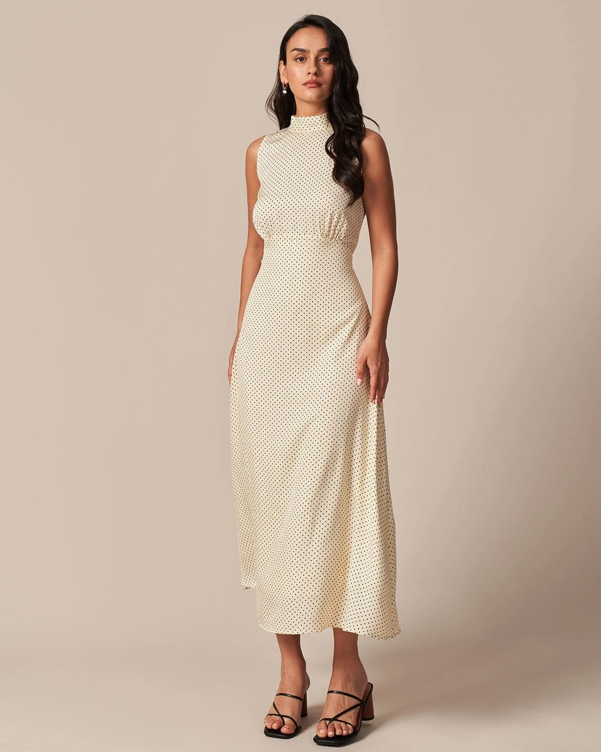 The Apricot Mock Neck Polka Dot Maxi Dress