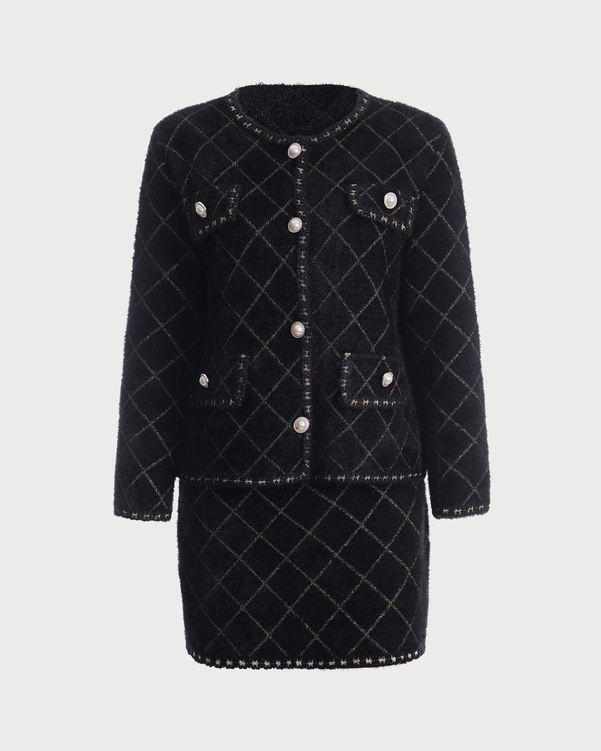 This Button Cardigan & Skirt Set is versatile, which combines feminine style with modern comfort. The button and ribbons detail adds a touch of elegance and pairs well with a variety of tops. The slight stretch and Natural waisted design create a classic silhouette with a modern twist, perfect for any occasion. Whether dressed up with heels or dressed down with sneakers, this skirt is a must-have addition to any wardrobe.