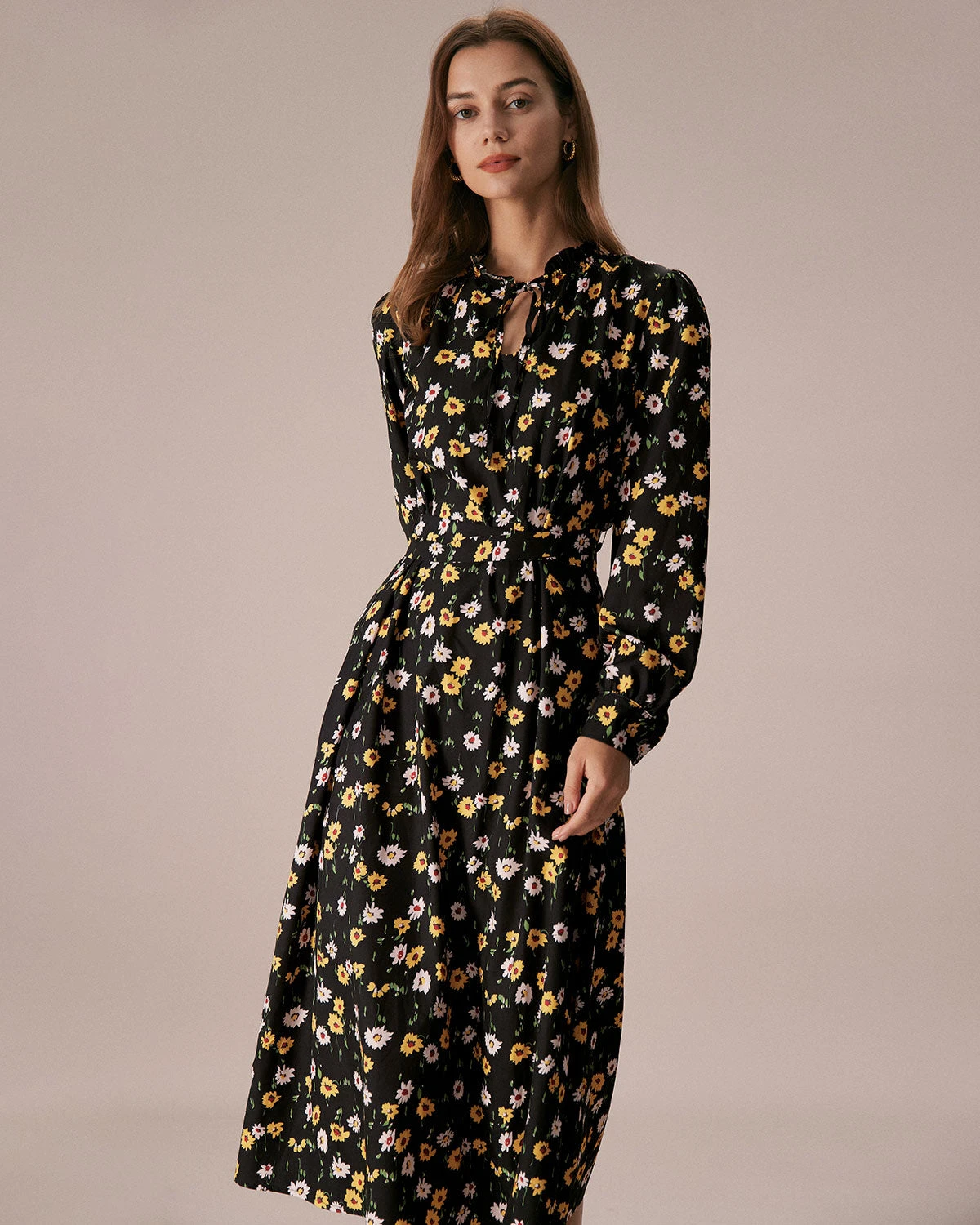 Be the first to review “The Black Tie Neck Floral Ruched Midi Dress” Cancel reply