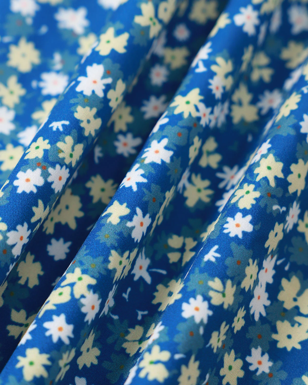 Featuring a delicate floral pattern set against a vibrant blue backdrop, this floral dress is designed to make a statement. The frill trim adds a touch of femininity and movement, while the midi length offers a versatile and flattering silhouette suitable for various occasions.Â