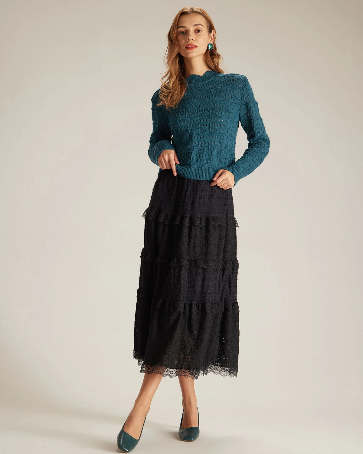 This Long Sleeve Top is a versatile piece that combines classic style with modern comfort. The wave cut, scalloped and pointelle design adds vibrancy to this top, while the long sleeves, mock neck and medium stretch details make it perfect for warmer weather. Whether dressed up with a skirt or dressed down with jeans, this top is sure to become a wardrobe staple.