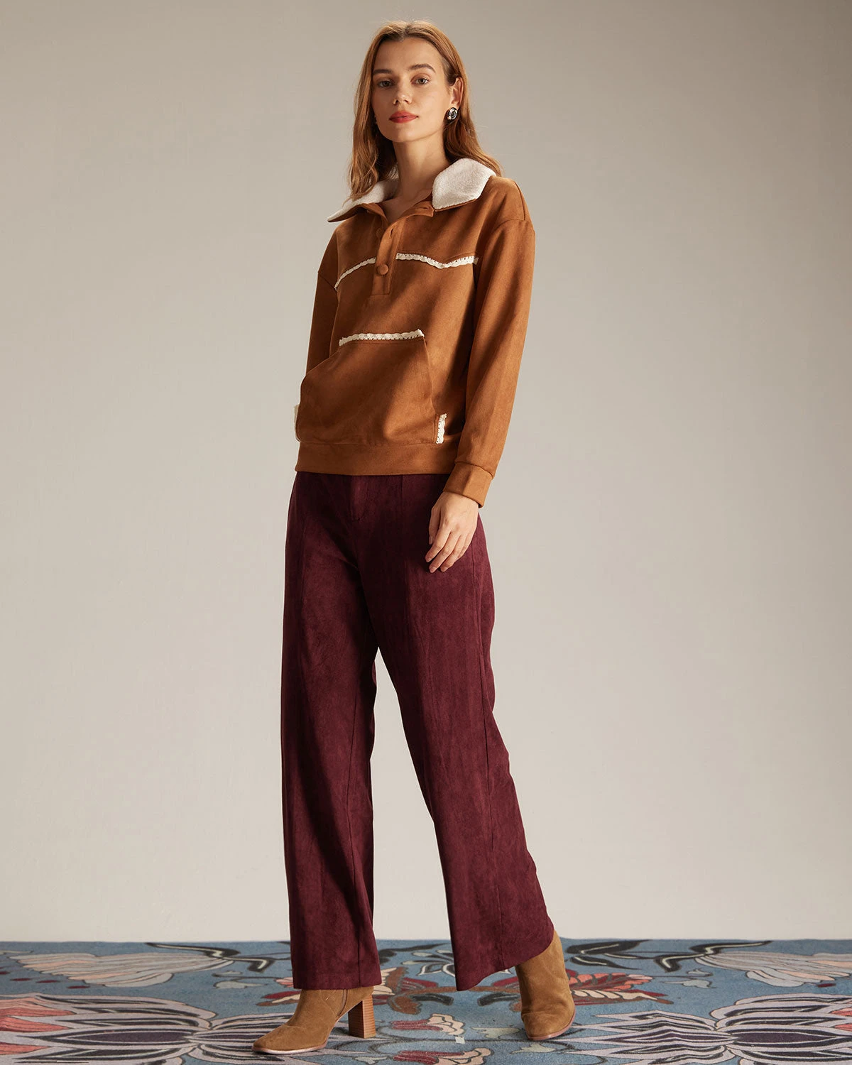 For a more laid-back take on an everyday chic staple, may as well add this Long Sleeve Sweatshirt to your wardrobe. Designed with long sleeves, lapel and regular fit design, this shirt is versatile for daily casual wear. Also, its button and pockets details add a sense of design to it, great for matching your high-waisted pants.