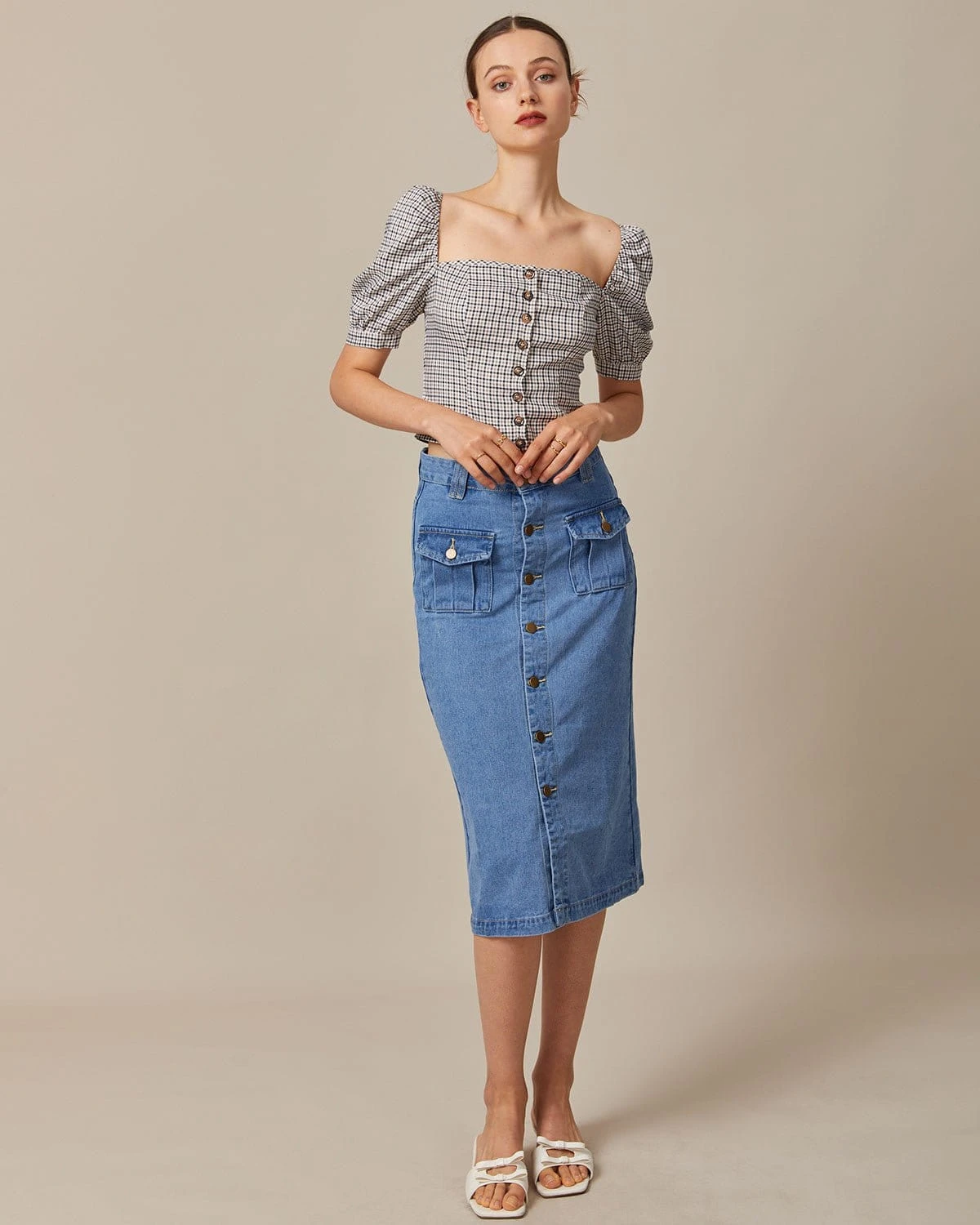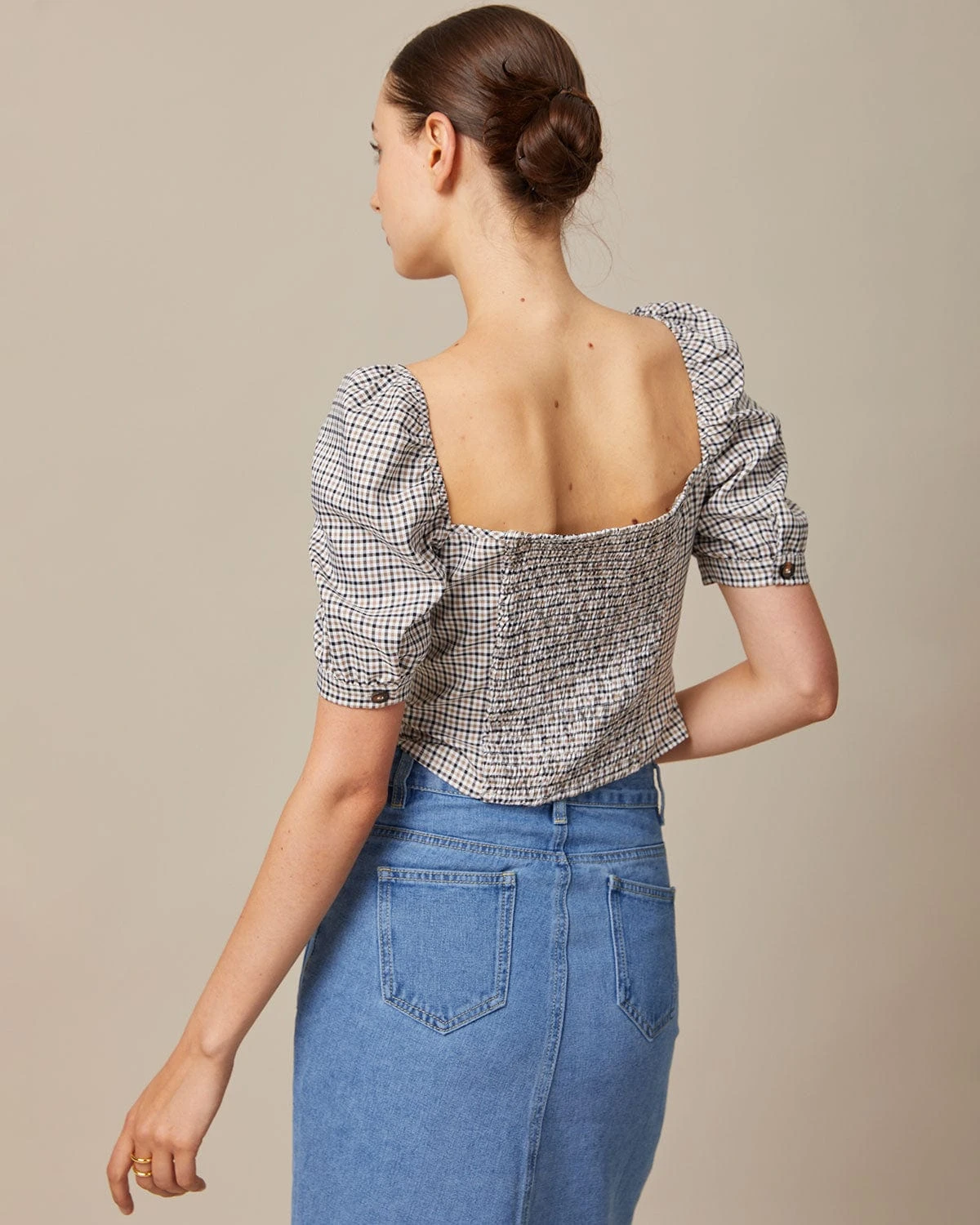 For a more laid-back take on an everyday chic staple, may as well add this Puff Sleeve Blouse to your wardrobe. Designed with puff sleeve, square neck and button design, this short sleeve blouse is versatile for daily casual wear. Also, its shirred and plaid design adds a sense of design to it, great for matching your high-waisted pants.