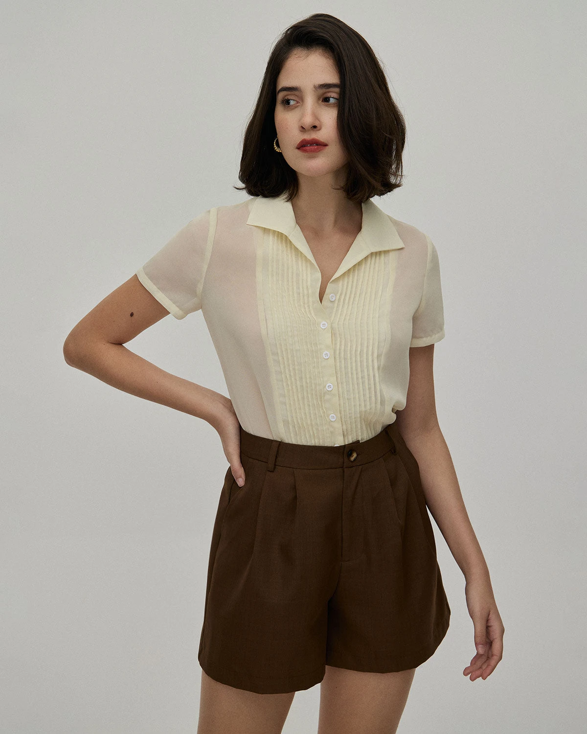 Made from a blend of materials, these High-Waisted shorts offer a luxurious feel against your skin. The high-waisted design provides a flattering silhouette, accentuating your curves while offering a secure fit. The pleated detailing adds a touch of elegance, creating subtle movement and dimension to your look.