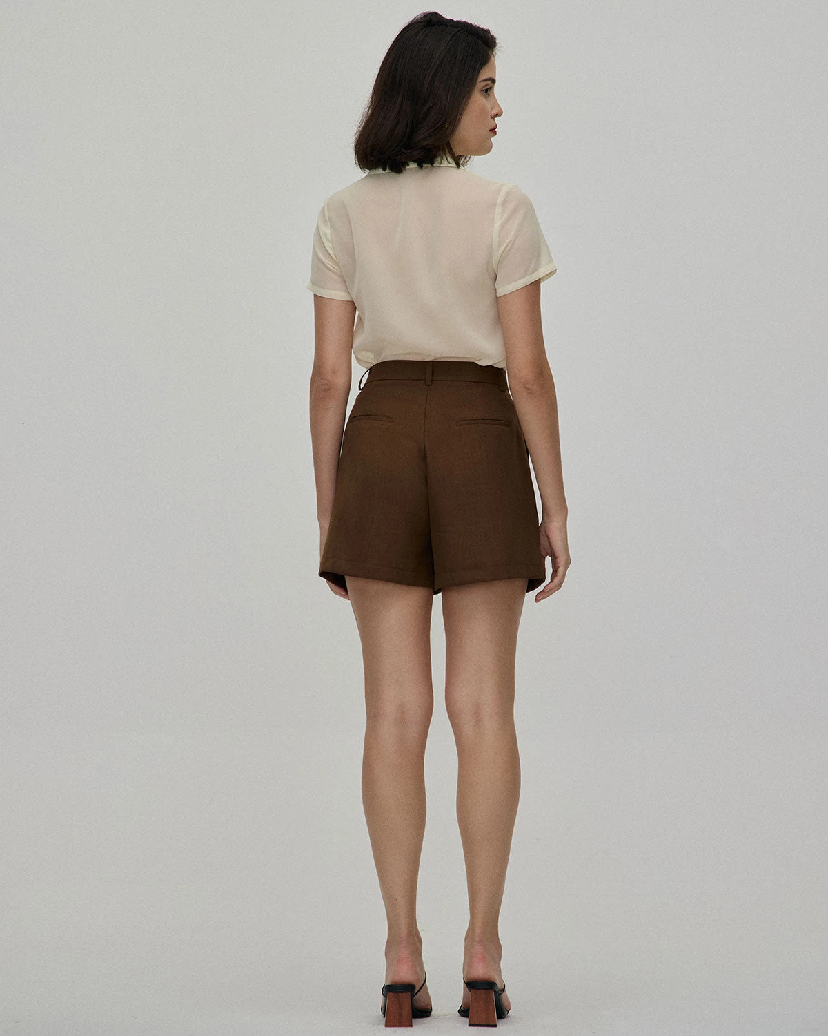 The Coffee Pleated High-Waisted Wide Leg Shorts