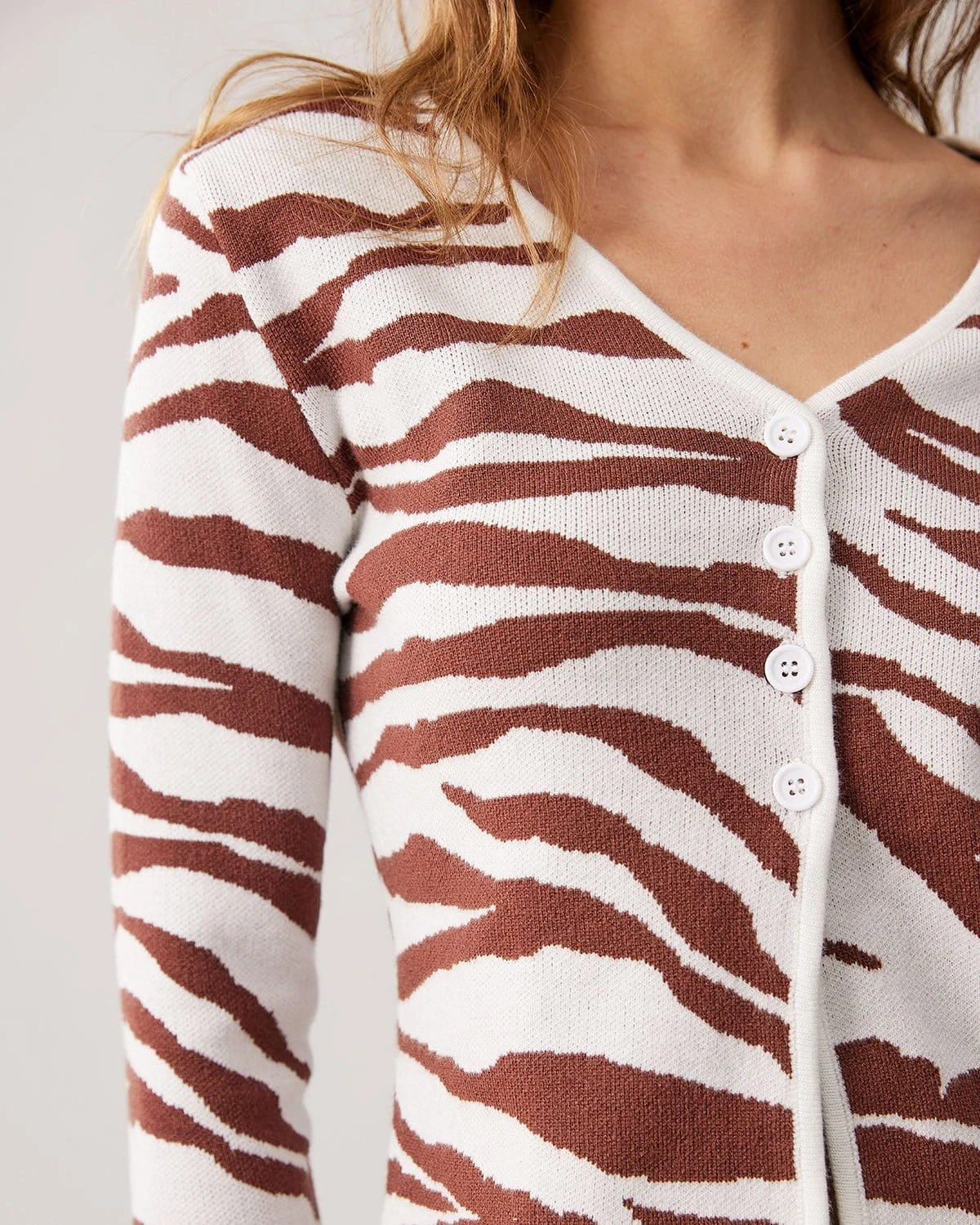 The Coffee V Neck Zebra Knit Cardigan