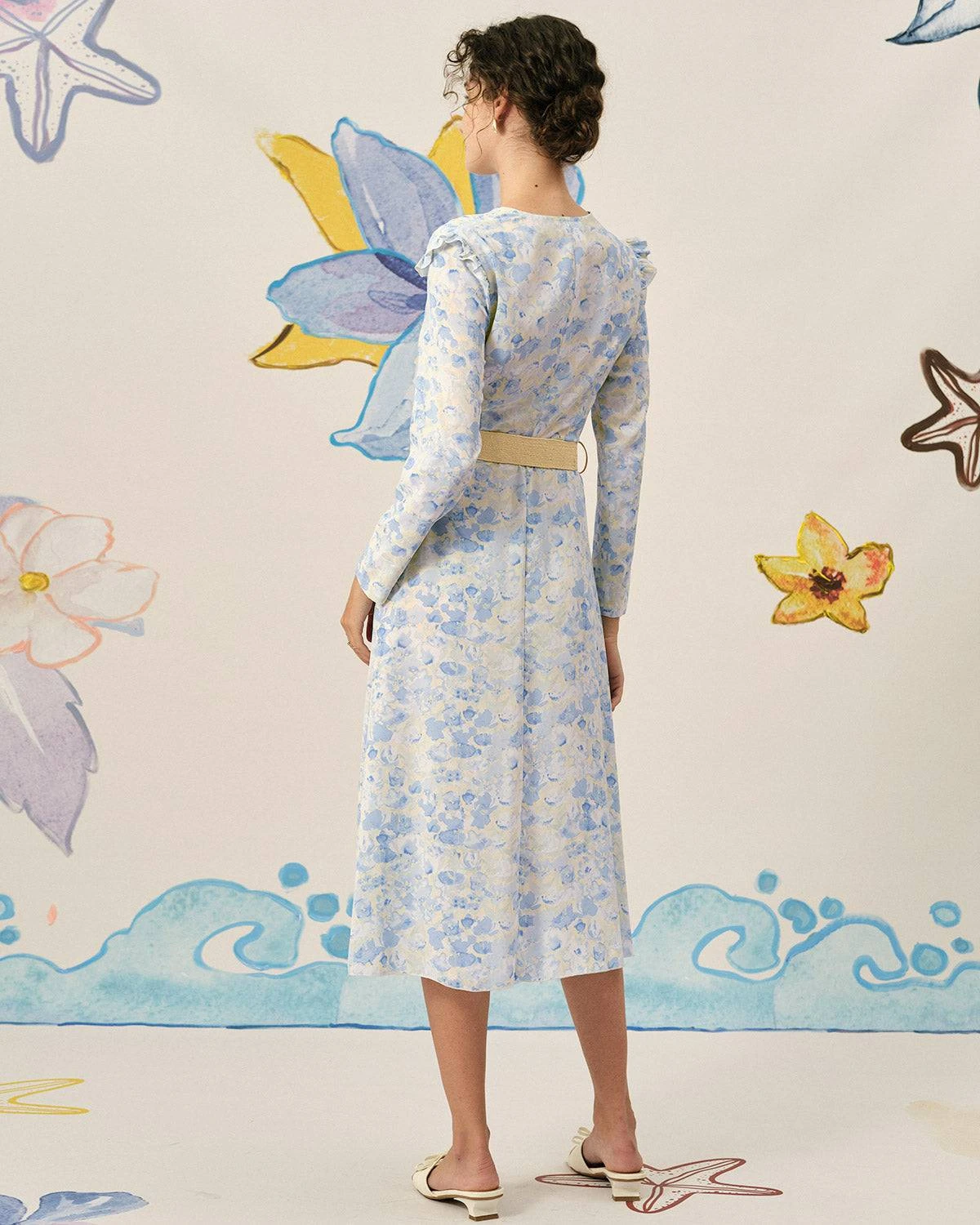 Featuring a deep v-neck, women’s sexy and charm are fully shown. Coupled with the ruffle trim on the joint of sleeves and shoulder, it is well-designed to arrest people’s attention. Plus, the high-waisted design gives a good display of women’s figure ratio, making women higher than usual. Certainly, the floral pattern makes it romantic, and suitable for vacation wear.