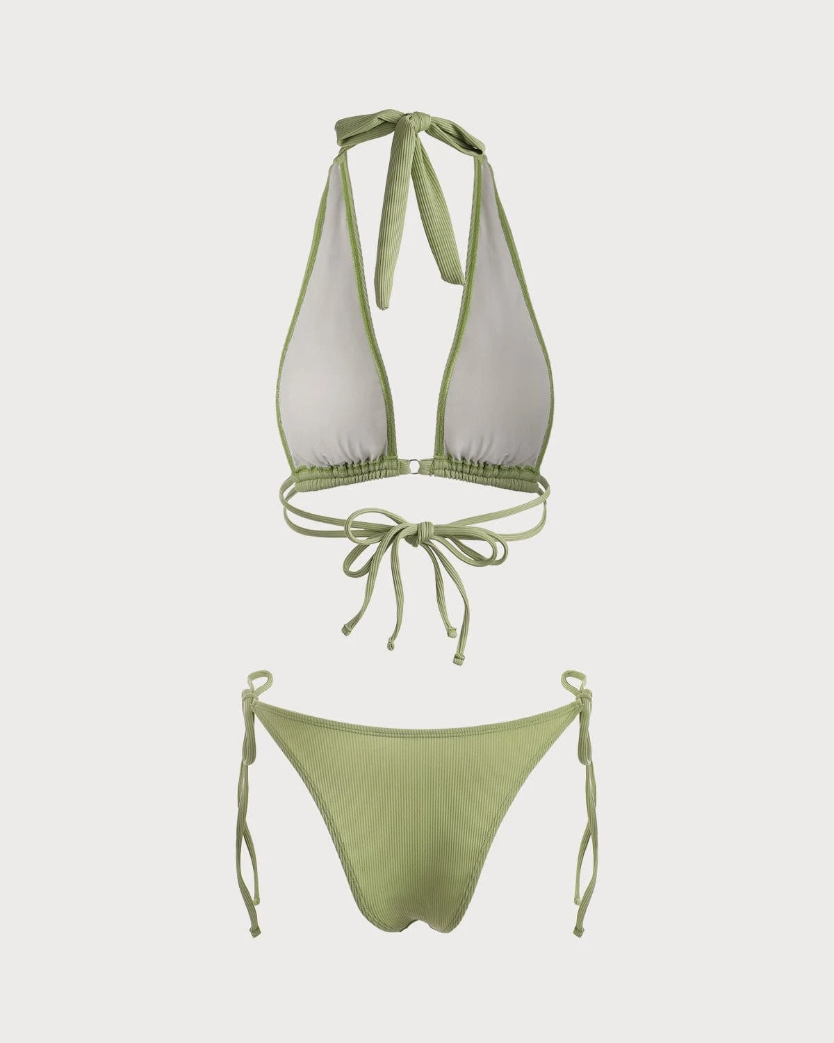 An occasional vacation should be a good way to free self. This way, suitable swimsuits are must-haves. Designed with removable soft cups, halter, and high-cut leg, this Ribbed Bikini Top and bottom should be your first choice, sexy yet cozy. Its high-stretch fabric and removable soft cups relax your body to the fullest, enjoying your vacation.