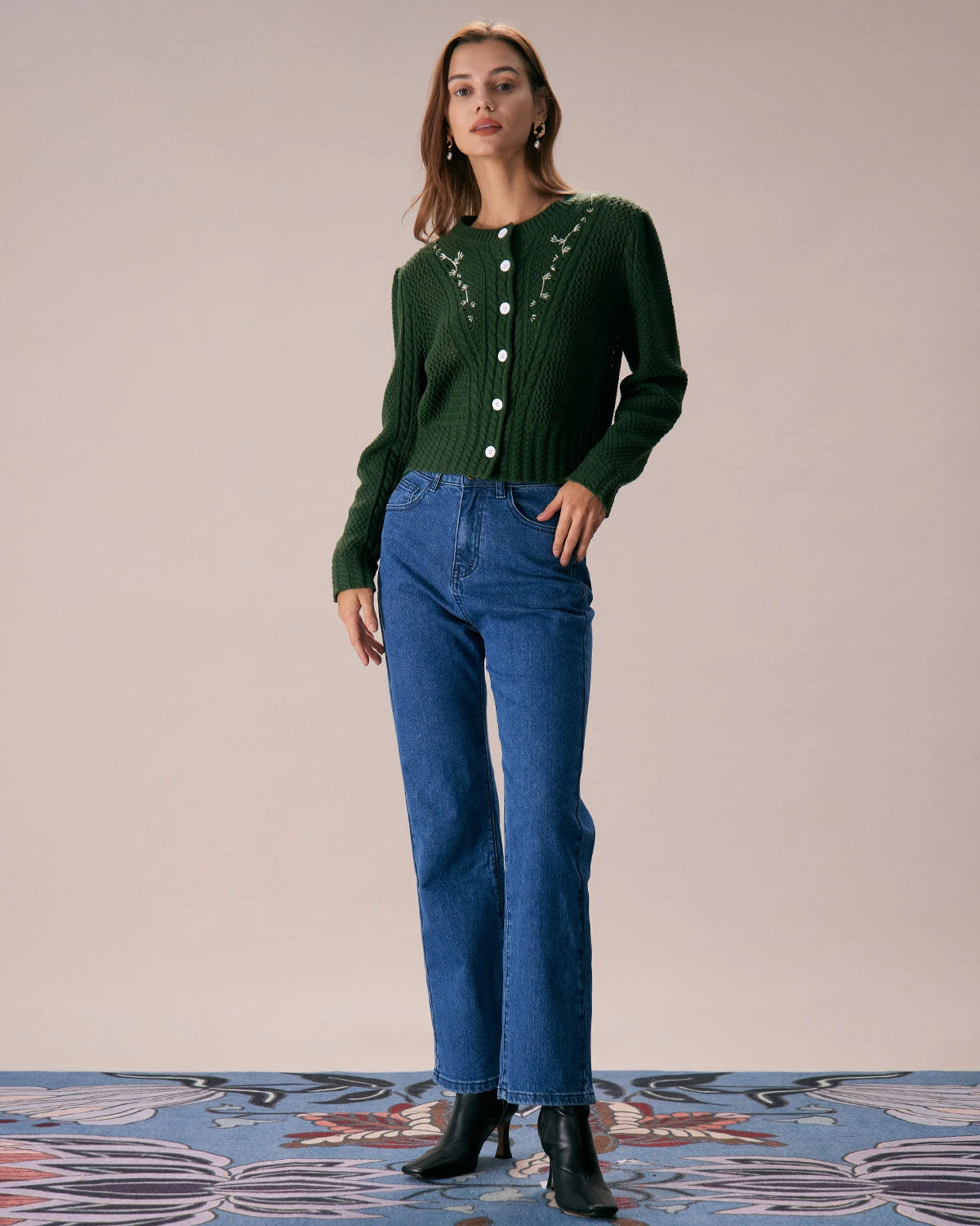 This Button Cardigan is made of Acrylic. Acrylic has such characteristics as softness, bulkiness, and bright color, and its light resistance, antibacterial ability, and anti-moth-eaten advantages are also particularly prominent.