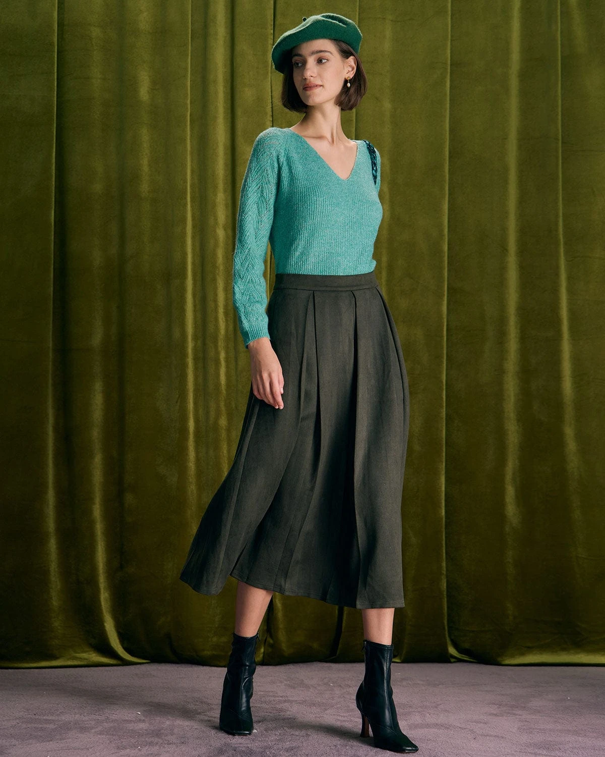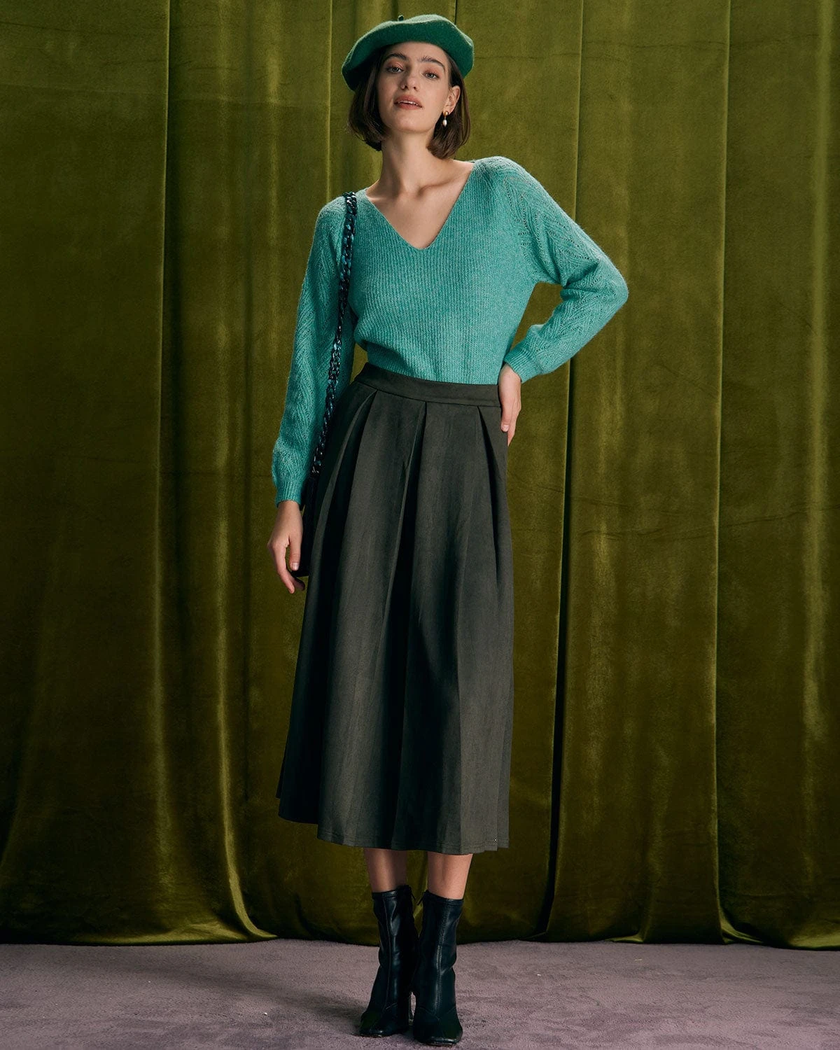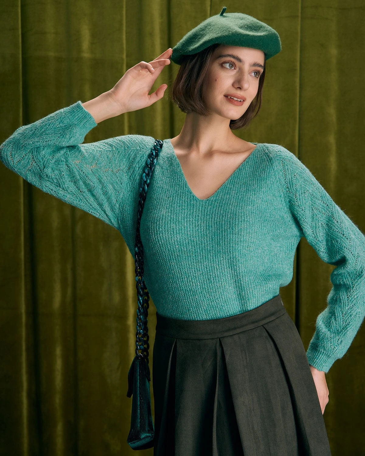 The Green V Neck Ribbed Raglan Sleeve Sweater