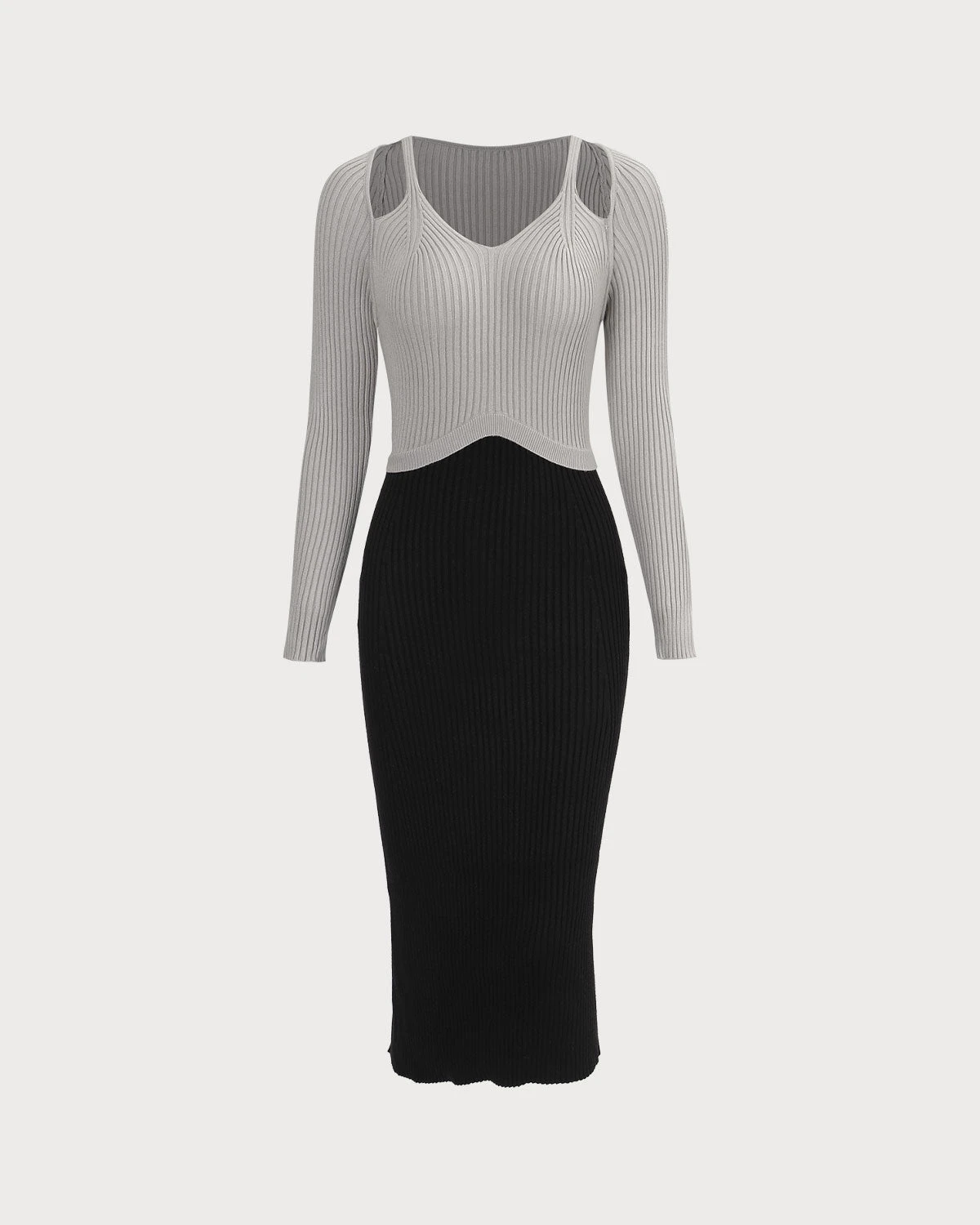 SKU: CMLOB 8212522860757 Categories: Dresses, Shop by Color & Fabric, Sweater Dresses Tags: Cutout Midi Dress, Nylon, Spliced Midi Dress, V Neck Dresses