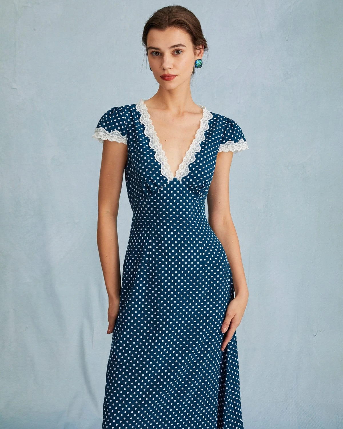 This V Neck Maxi Dress is a perfect choice for any occasion. Its high waisted and slim fit accentuate your curves and make you feel confident and beautiful. The ruched, lace and polka dot design adds a feminine touch and makes this dress perfect for any occasion. Whether you’re going out on a date or attending a formal event, this dress is sure to turn heads and make you feel fabulous.