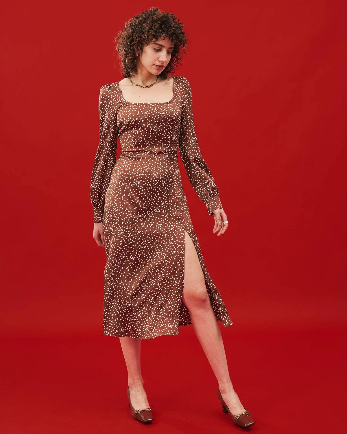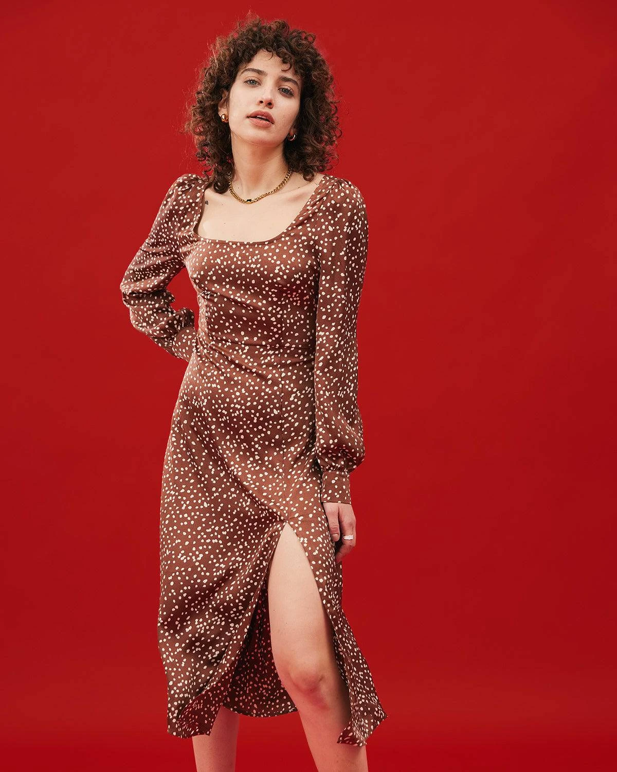 Vintage and elegant. Polka dot is never out of date. Featuring a full polka-dot pattern, this midi-length dress features a square neckline and slightly puffed sleeves, adding a feminine touch to you. This dress suits for most occasions, your new wardrobe staple.