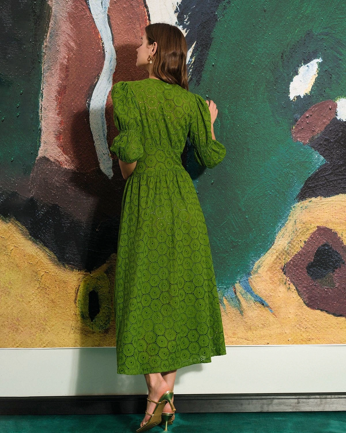 This floral dress deserves your well-crafted wardrobe. Featuring a v-neck and puff sleeve design, it makes females’ upper part stereo yet sophisticated, especially friendly to females with narrow shoulders. The cutout and slit design are the embodiment of craftmanship, adding enough sense of design. The high-waisted design offers females a good figure ratio.