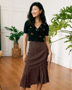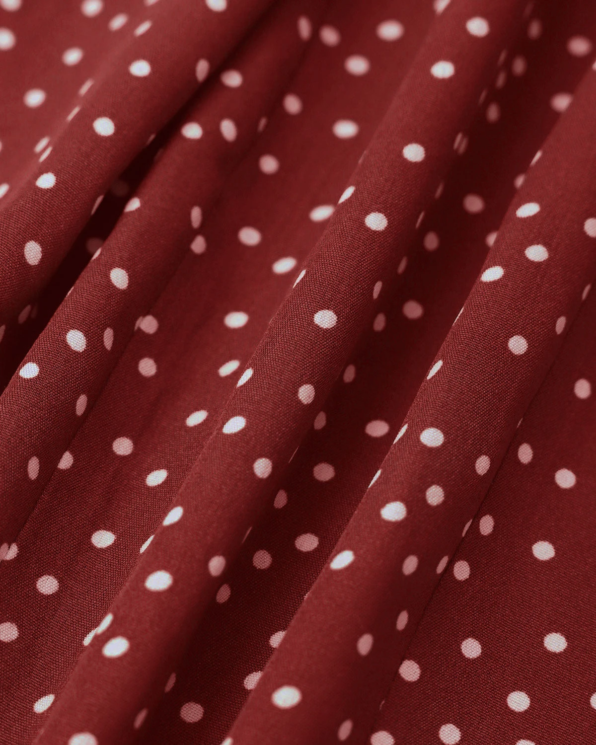 Polka dot print tends to connect with retro, classic yet temperament. Frill trim shoulder straps add a sense of design to it, while ruched on the bust follows the current trend, showing female gentleness and charm. Plus, the side split and high waisted design well balance the figure ratio, making you look higher than usual visually.