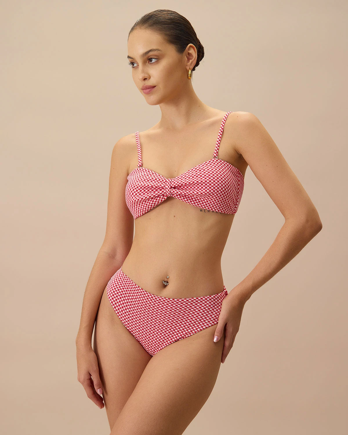 Featuring a bold red plaid pattern, this bikini bottom adds a playful pop of color to your beach or poolside look. Its classic design offers a comfortable and flattering fit, with moderate coverage that balances style and practicality.