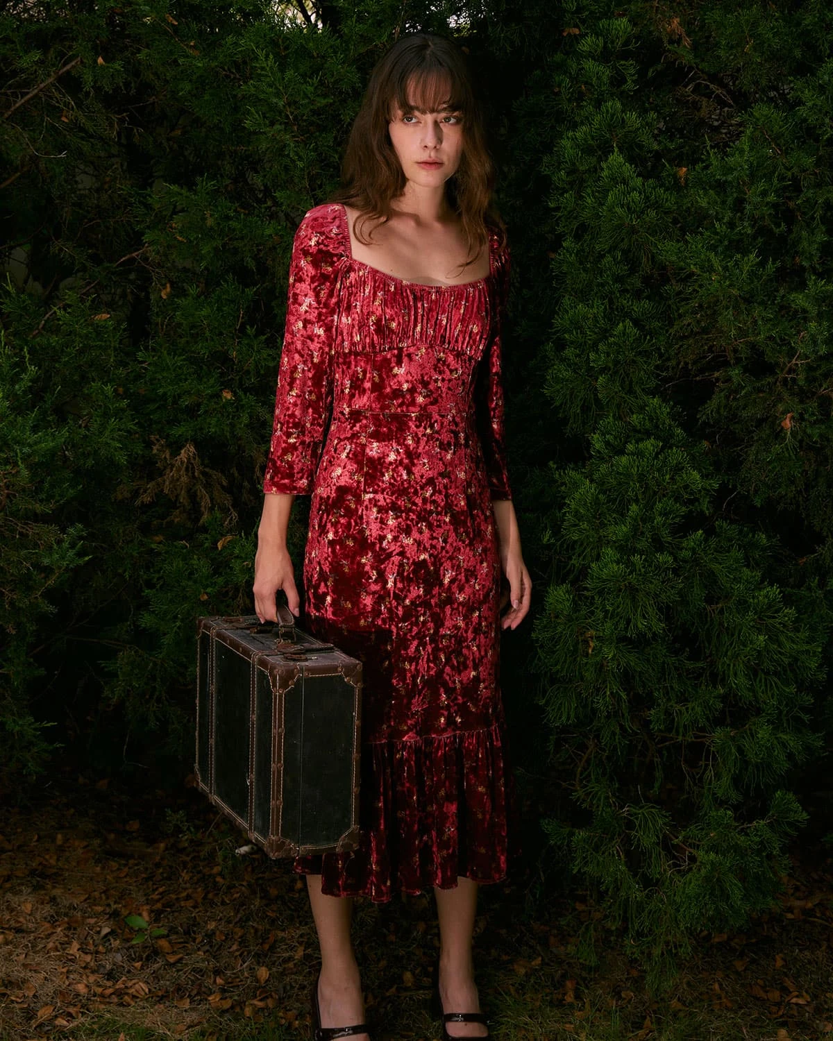 This Velvet Midi Dress is made of Polyester. Polyester is an artificial fiber that feels soft, looks lustrous, and dries fast. It’s also durable, with good resistance to wrinkles, stains, and sunlight.