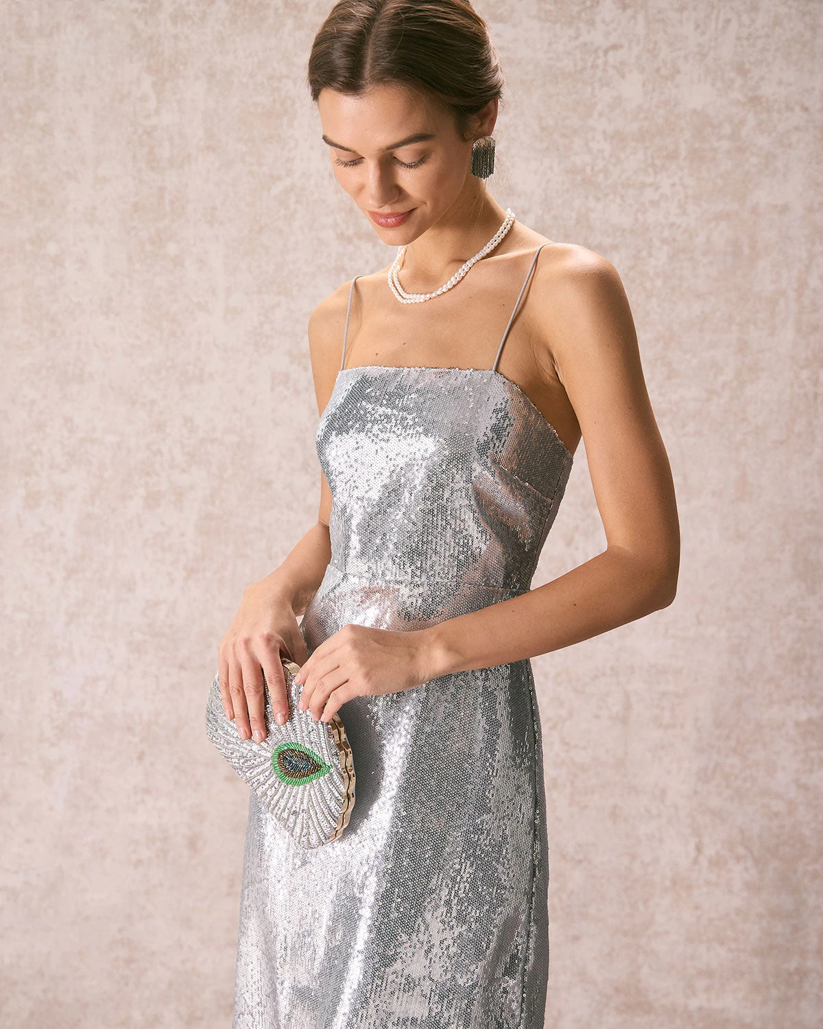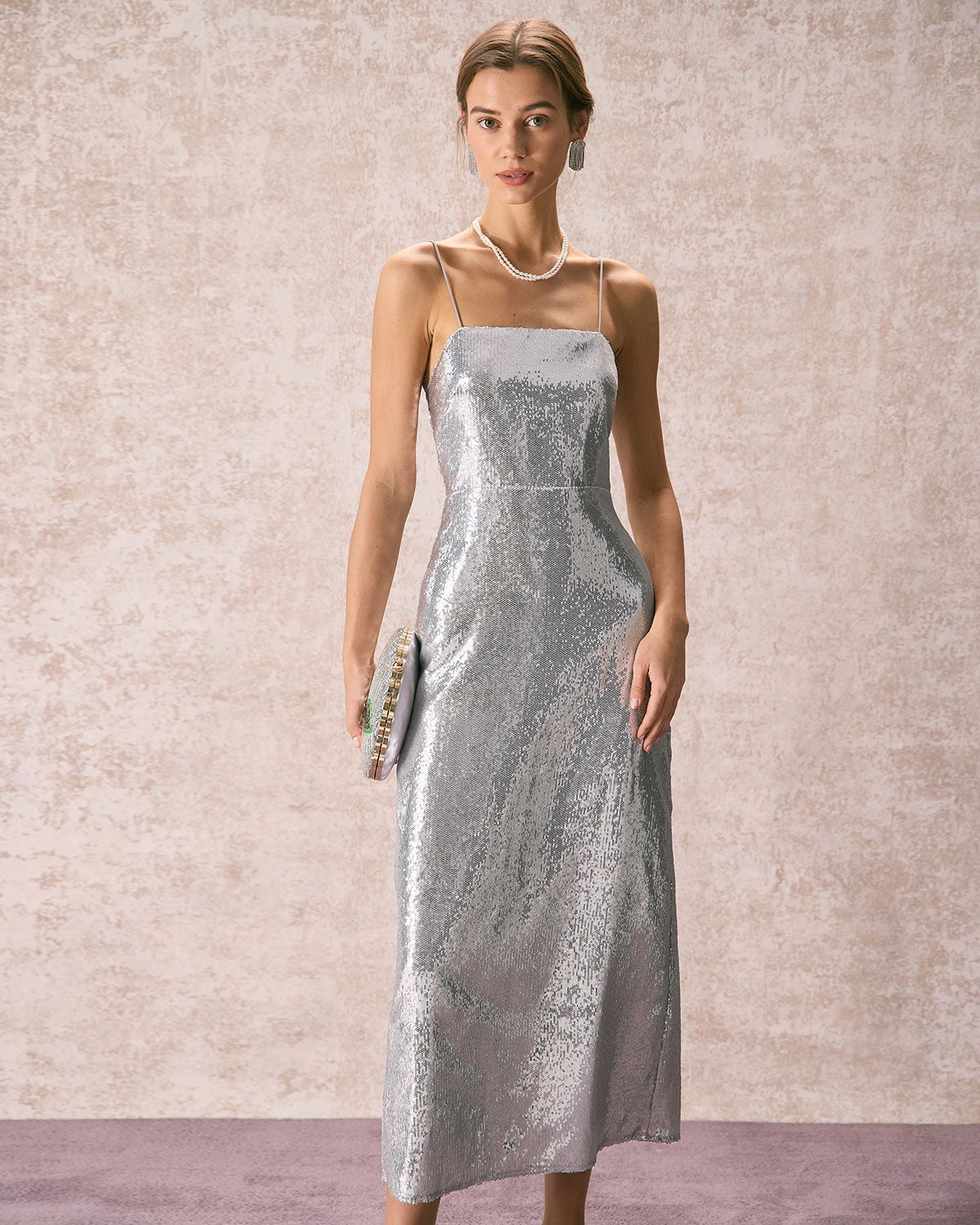 The Silver Sequin Sleeveless Strap Maxi Dress