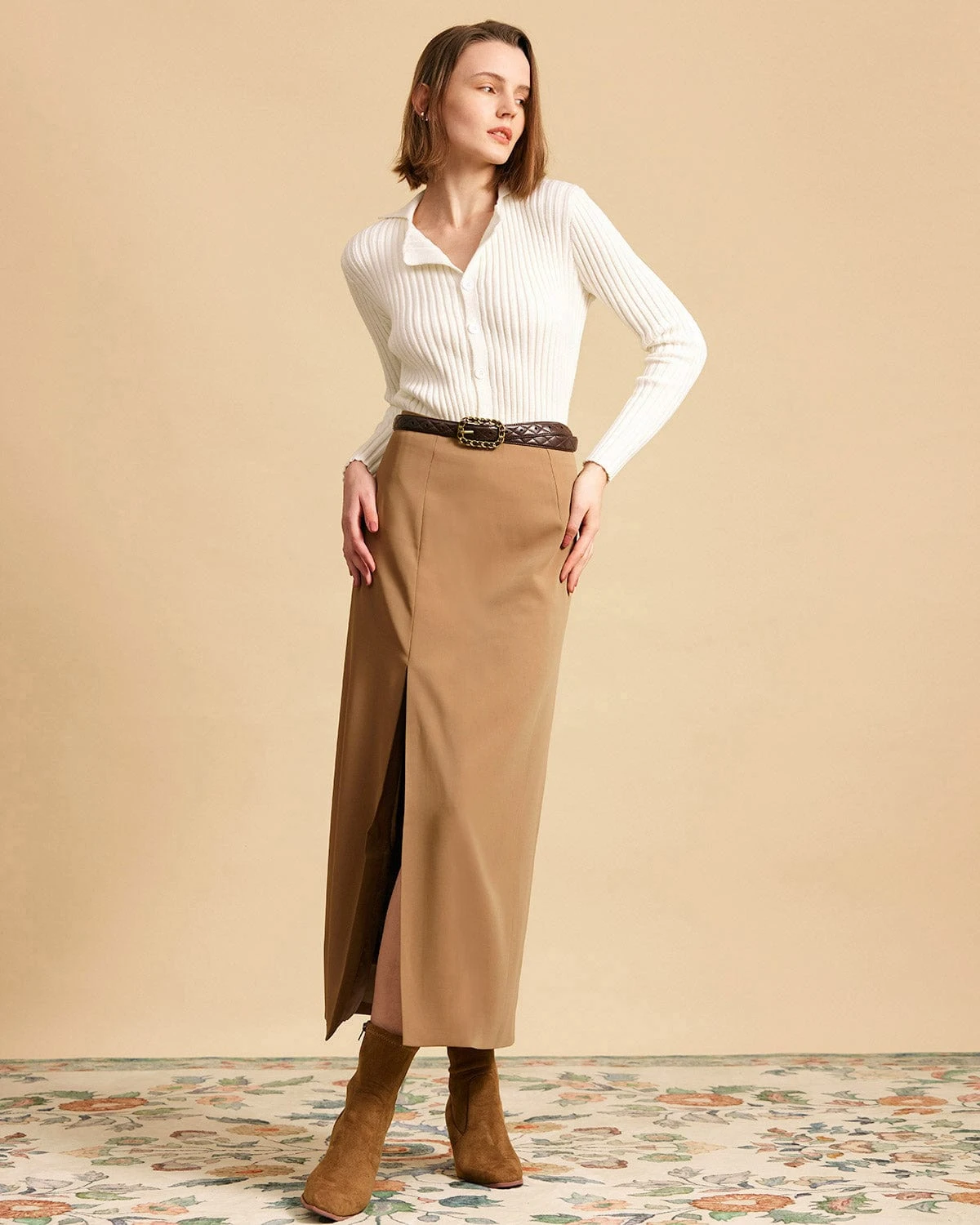 This is the sweater that will help you transition from summer to fall seamlessly. With warm acrylic material, ribbed details, and a collared design, this top is a wardrobe staple you’ll reach for again and again. Also, its slim-fitting knitwear design flatters your silhouette in a cozy way. Its solid color and button-up design can easily pair with your favorite jeans for an effortlessly chic look.