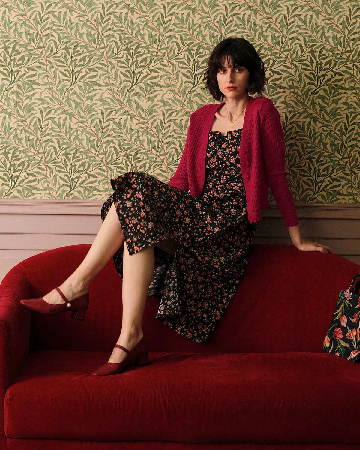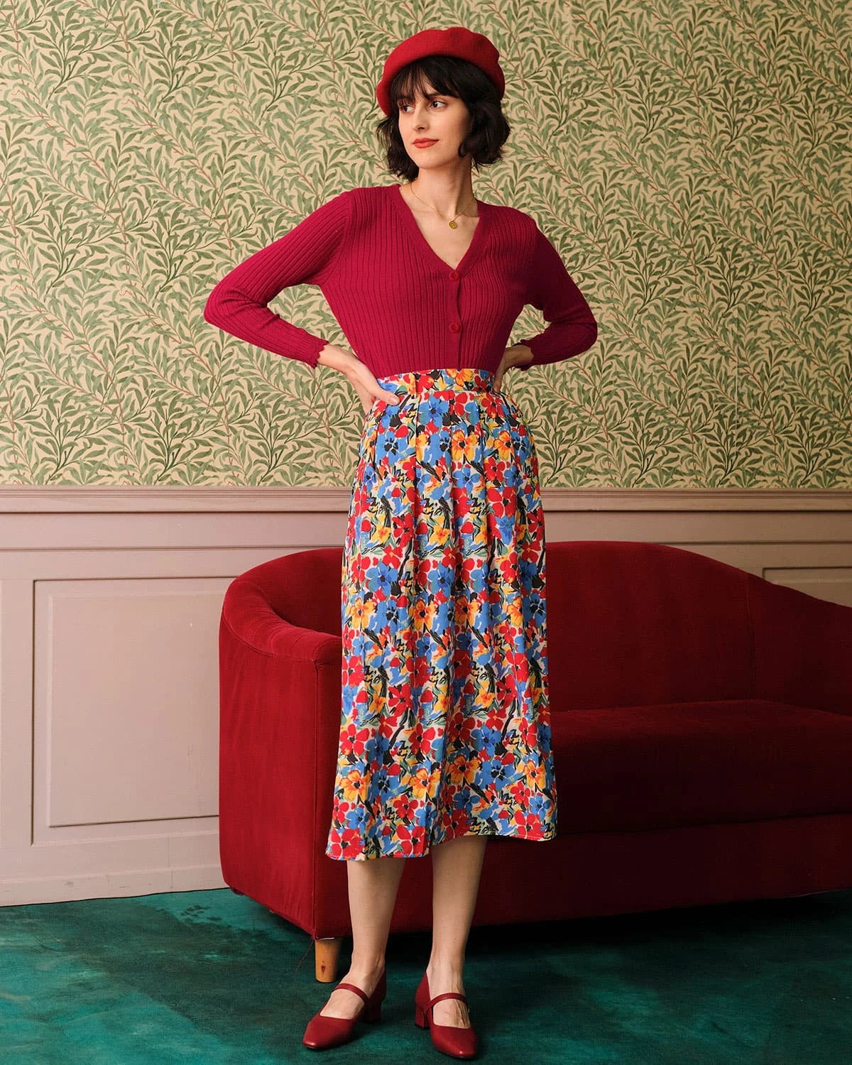 The red serves as a good foil to the skin color texture of females. Together with the ribbed fabric, this cardigan is textured visually. Plus, the v-neck and single-breasted design are simple and casual, while the slim-fitting design offers a good look into females’ figures. Make a try to match it with a sling dress.