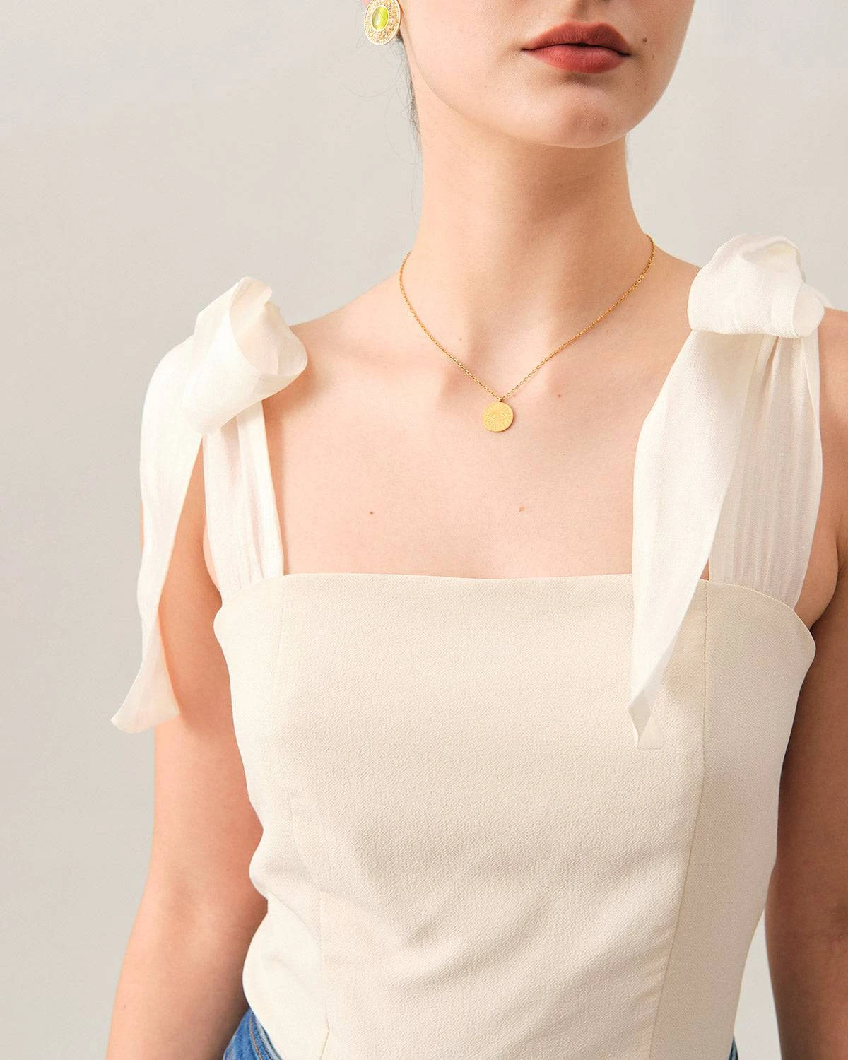 The tie strap design functions as both an ornament and convenience for adjusting straps’ length, practical and beautiful. The shirred design on the back has a little elasticity, relaxing female bodies. Plus, the slim fit gives a good display of women’s slim figures, while the solid color makes it suitable for being paired with bottoms of all types.