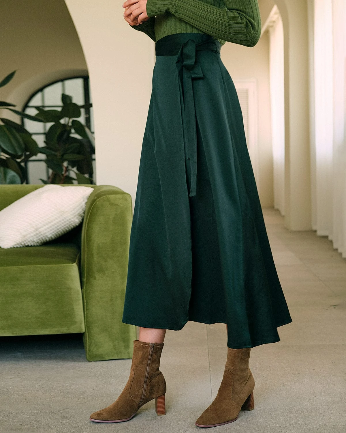 The tie waist design is its sole ornament, enough to brighten this solid skirt where females’ skin color textures are foiled. The high-waisted design offers females good figure ratios, and a regular fit, together with the satin fabric, featuring a high degree of gloss and coziness.