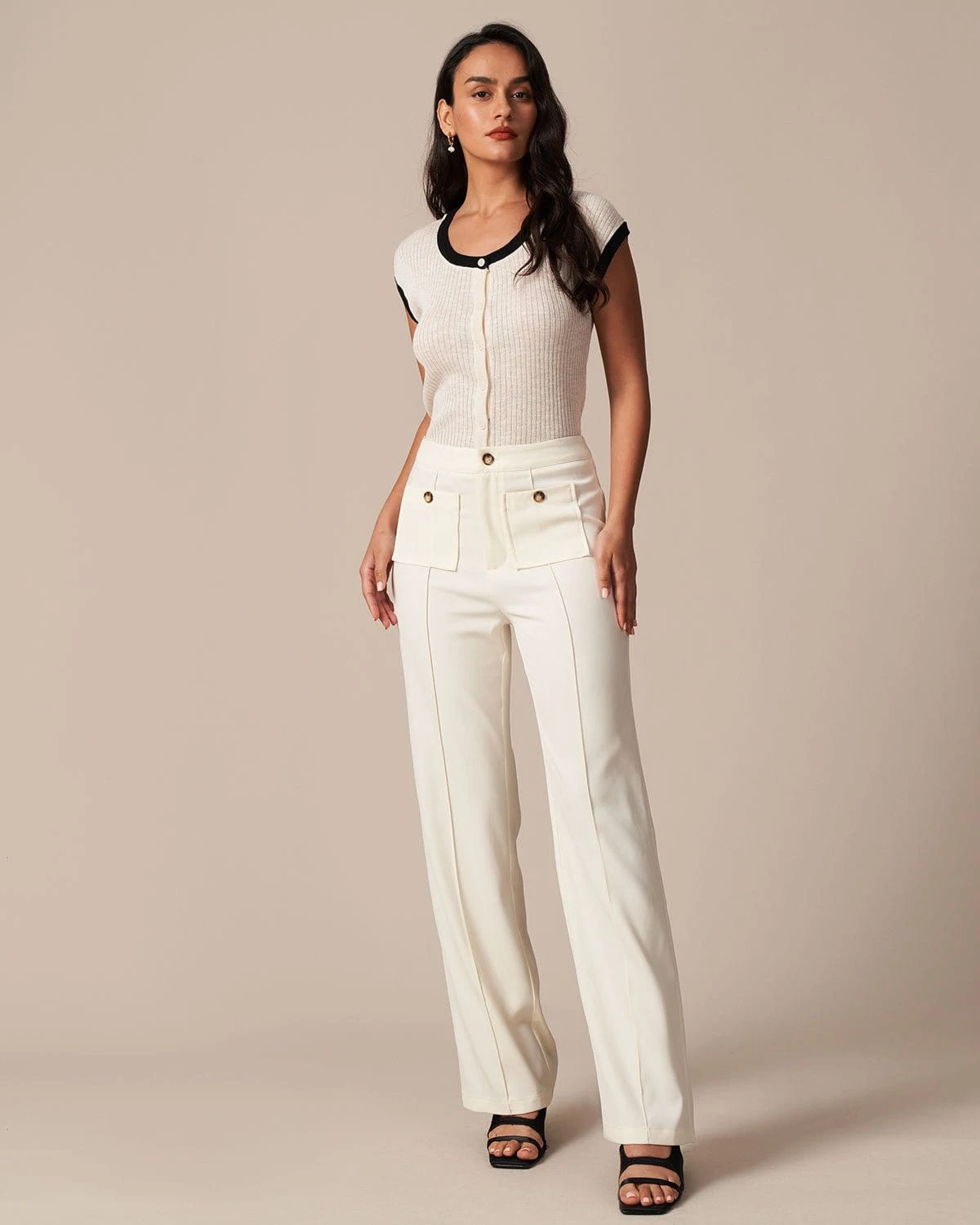The High Waisted Pants are versatile piece that combines feminine style with modern comfort. The pockets, zipper fly and button design adds a touch of elegance and pairs well with a variety of tops. The straight and high waisted design creates a classic silhouette with a modern twist, perfect for any occasion. Whether dressed up with heels or dressed down with sneakers, the pants are must-have addition to any wardrobe.