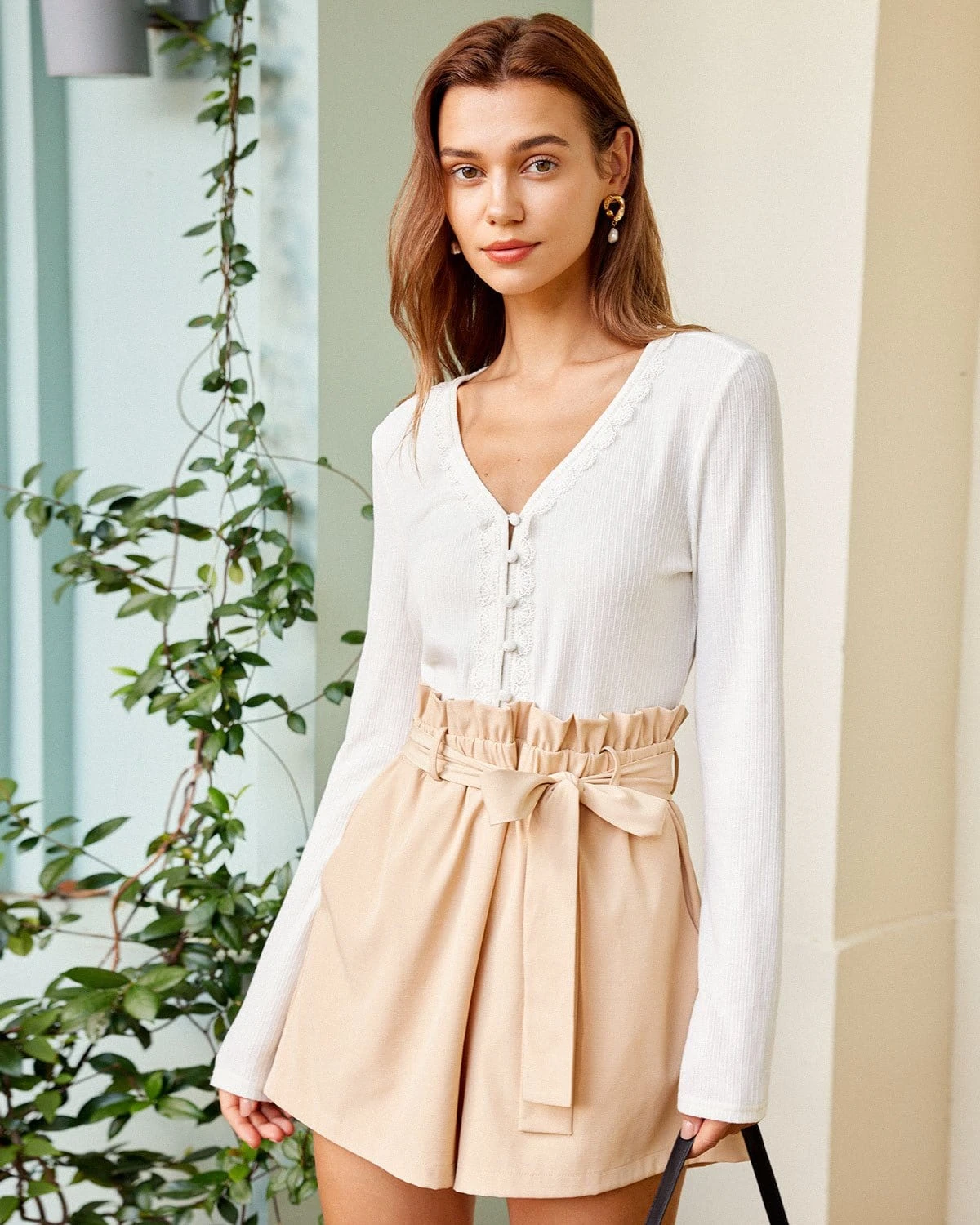 This Long Sleeve Tee is a perfect addition to any wardrobe. The delicate v-neck, lace trim and ribbed design adds a touch of sophistication to the tee, meanwhile creates a stylish and feminine look. The long sleeves, slim fit and medium stretch design provides a relaxed and casual feel, making it perfect for everyday wear or dressier occasions. You will love the comfortable and stylish fit of this must-have tee.