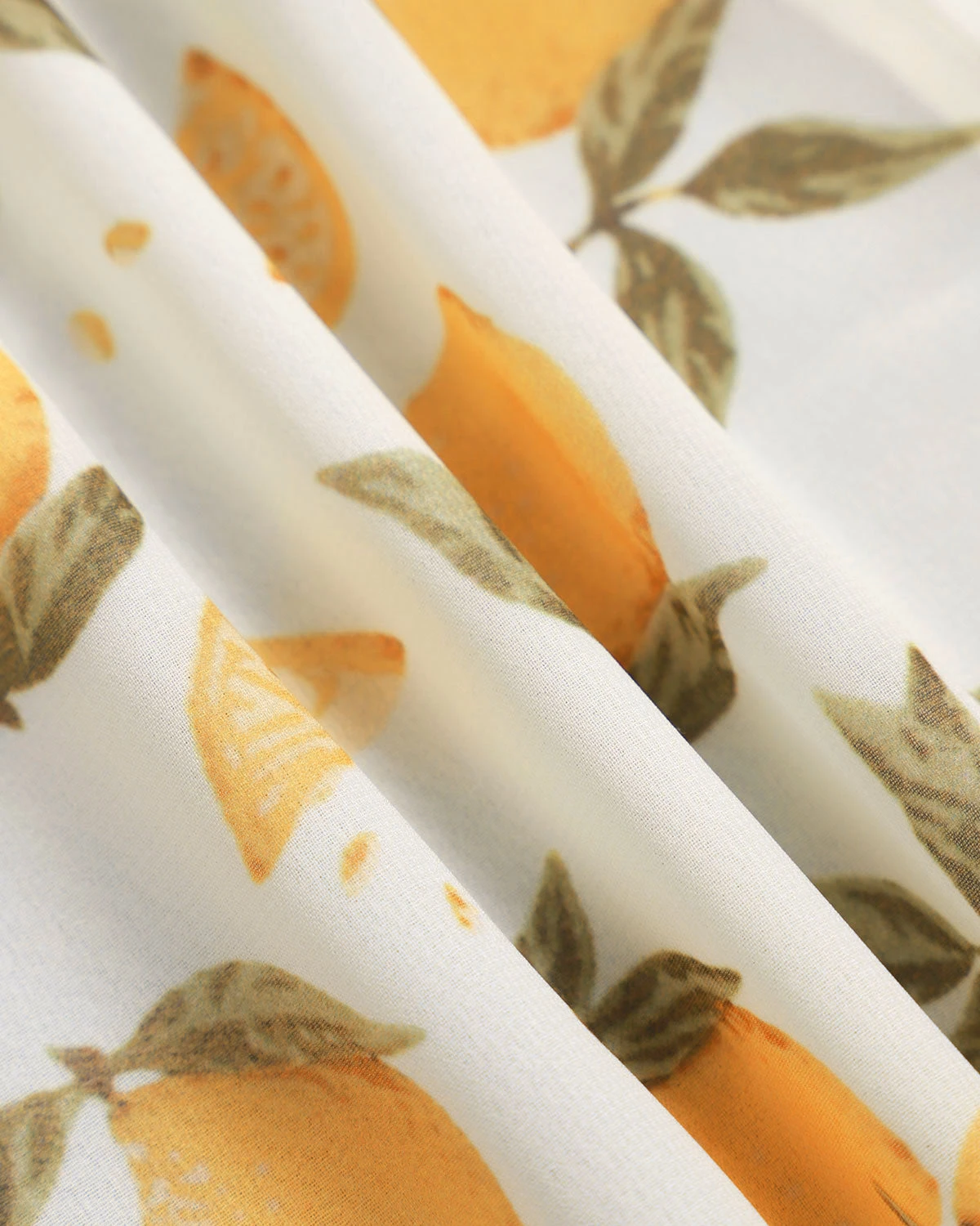 Featuring a wrap-around design, this dress cinches at the waist to create a flattering silhouette, while the refreshing yellow lemon print adds a playful and summery vibe. The midi length makes it suitable for a variety of occasions, from casual daytime outings to more polished evening events.